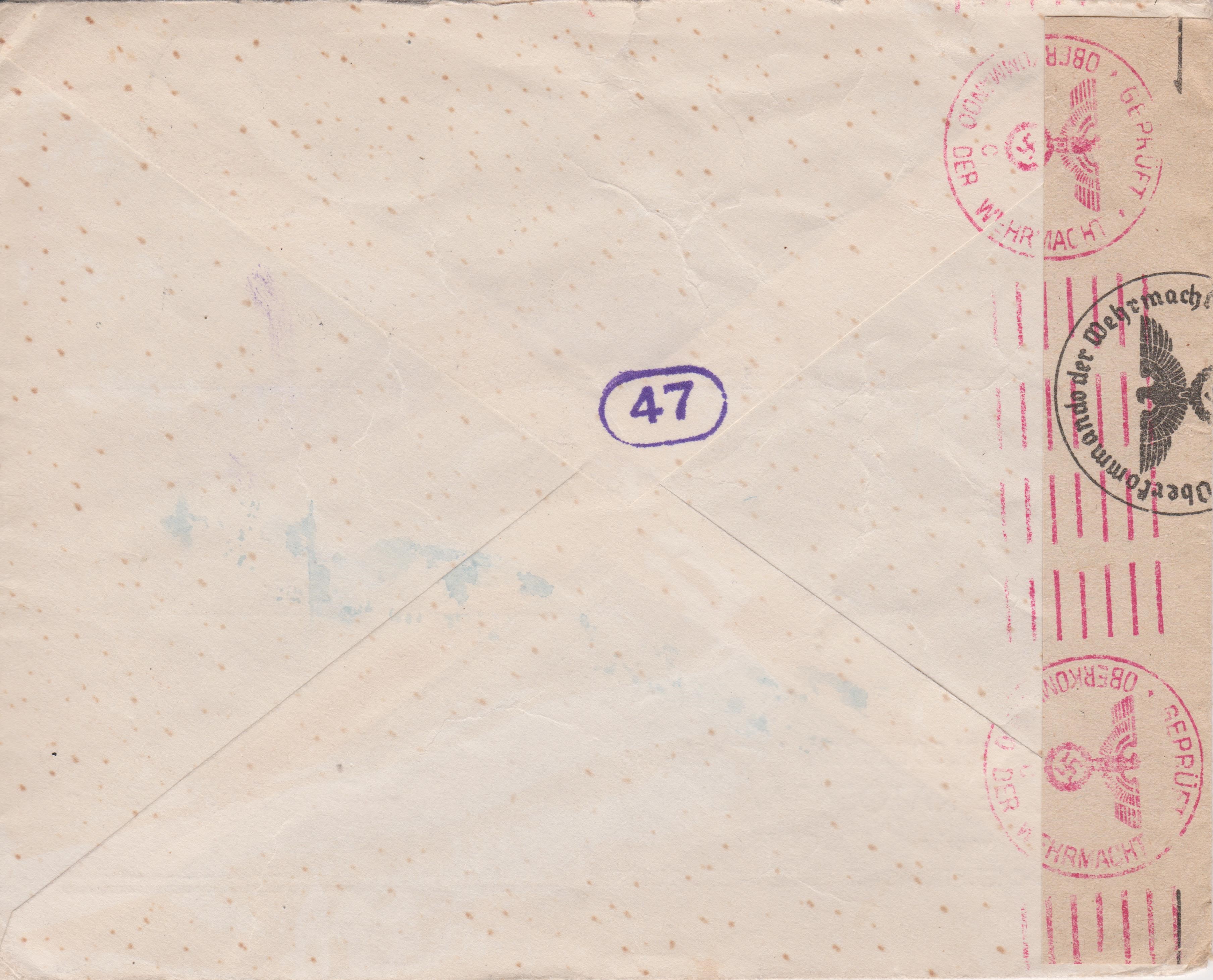 Der Beleg wurde der ABP Köln zugeleitet, wo vorderseitig ein Handprüfstempel "C 10" in Rot abgeschlagen wurde.