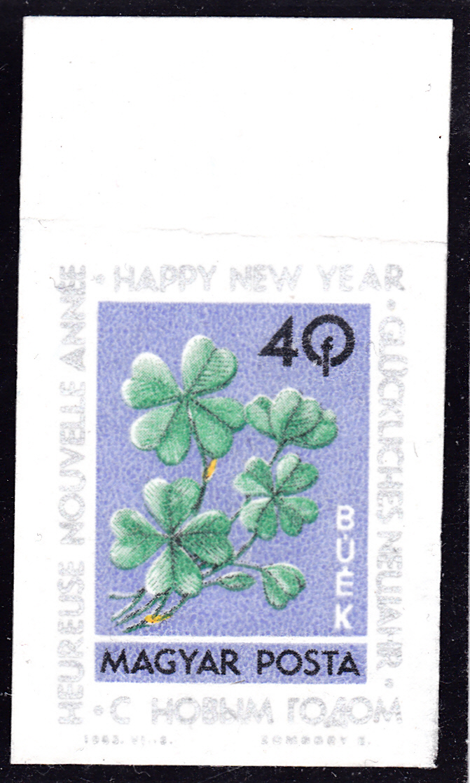 In einer Serie "Neujahr" ist in Ungarn diese Marke (MiNr 1985 B) mit vierblättrigen Kleeblätter und der Inschrift „Glückliches Neujahr“ in Ungarisch, Englisch, Französisch, Deutsch und Russisch.