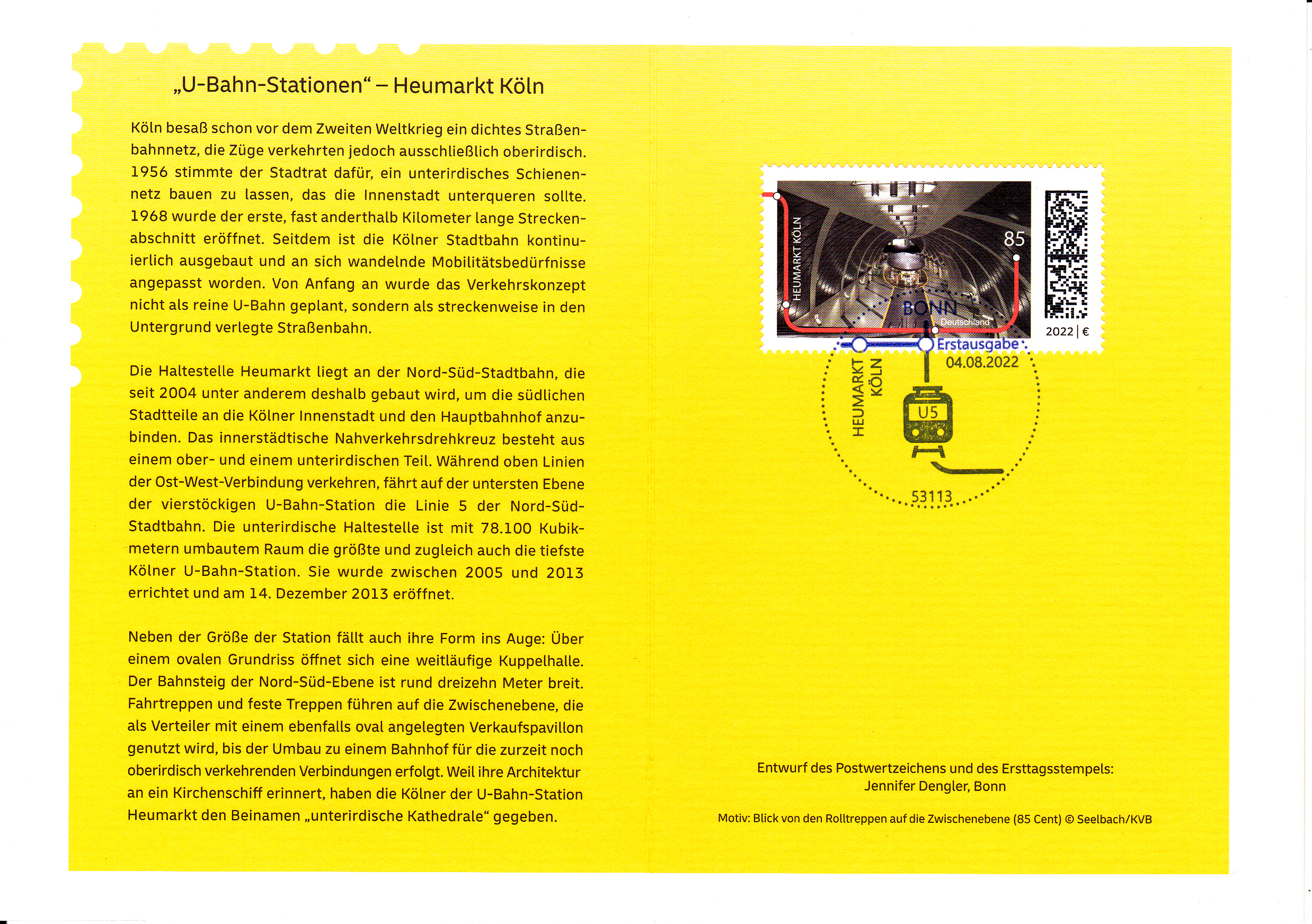 In der Serie "U-Bahn-Stationen" der Deutschen Post ist auch eine Marke (MiNr 3759) mit einer Abbildung aus der U-Bahn-Station Reinoldikirche erschienen. Hier zeige ich ein Eckrandstück mit EAN-Codierung.