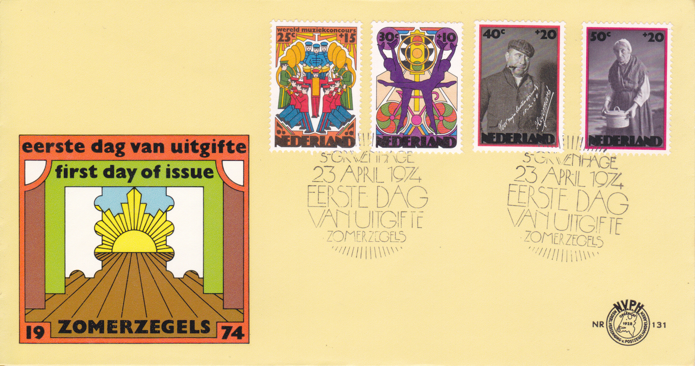 FDC mit den vier "Sommermarken" 1974 aus den Niederlande.