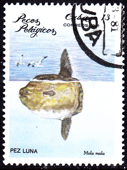 Diese Marke aus Kuba (MiNr 2537) zeigt uns einen Mondfisch (Mola mola).