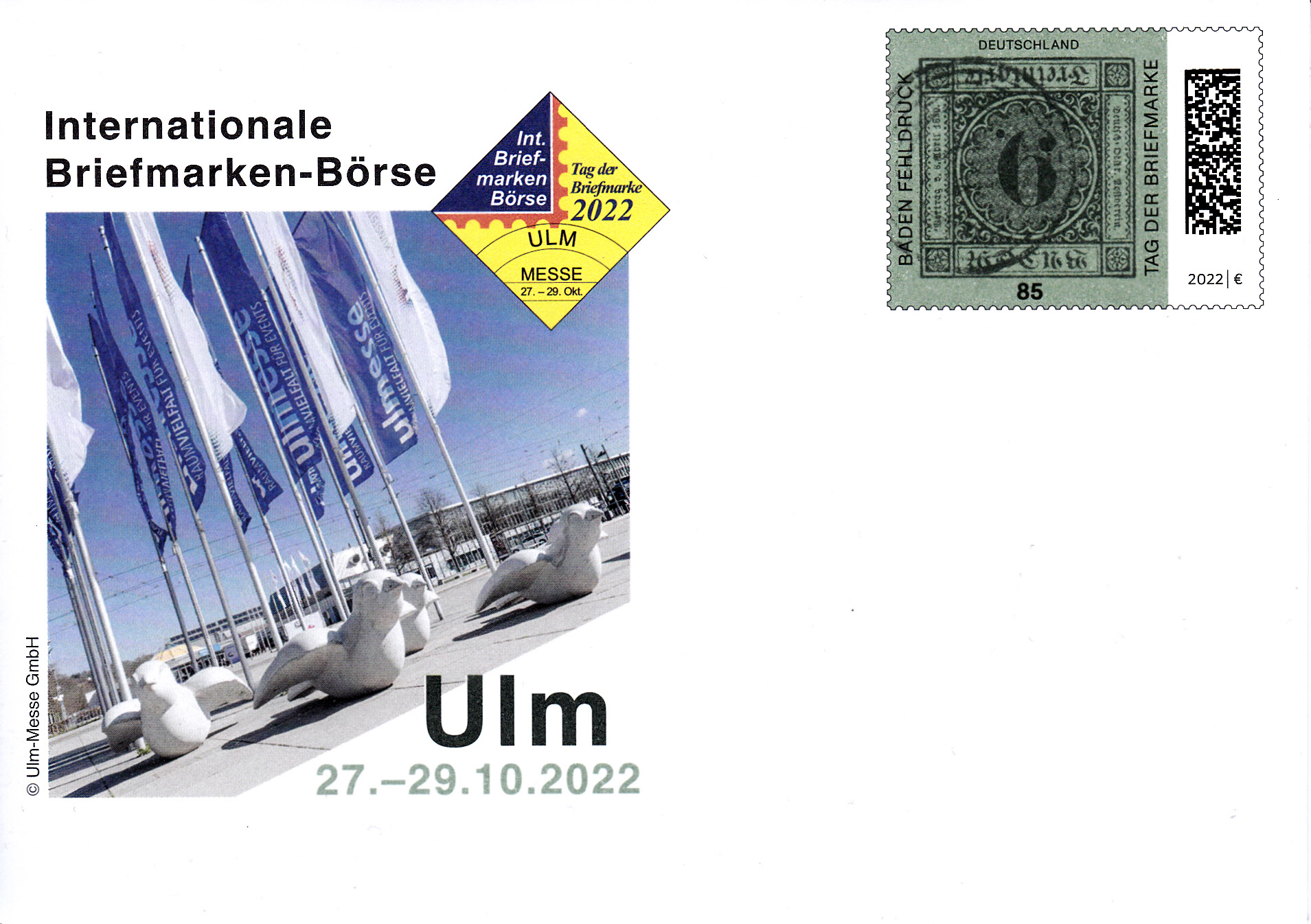 Zum Tag der Briefmarke 2021 ist bei der Deutschen Post eine Marke (MiNr 3719) mit dem Baden-Fehldruck MiNr. 4 F erschienen. Die Marke in schwarz auf blaugrünem statt lilarosa Papier, entwertet mit einem Fünfring-Nummernstempel "41", ist kopfstehend abgebildet.