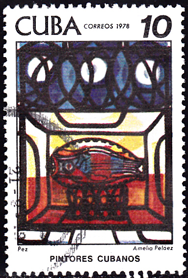 Das Gemälde "Fisch" von Amelia Peláez del Casal ist auf dieser Marke (MiNr 2340) zu sehen.