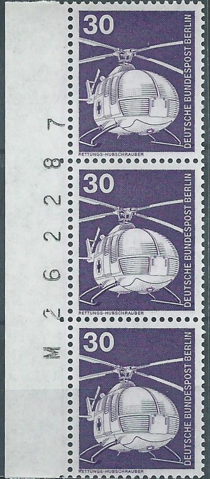 Erstausgabetag der 30 Pfennig - Berlin war der 14.8.1975. Hier ein postfrischer senkrechter 3er-Streifen.