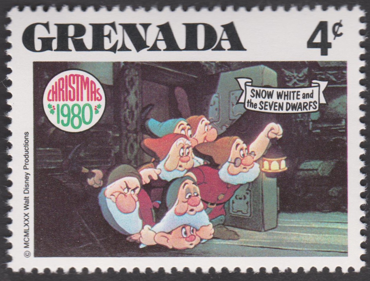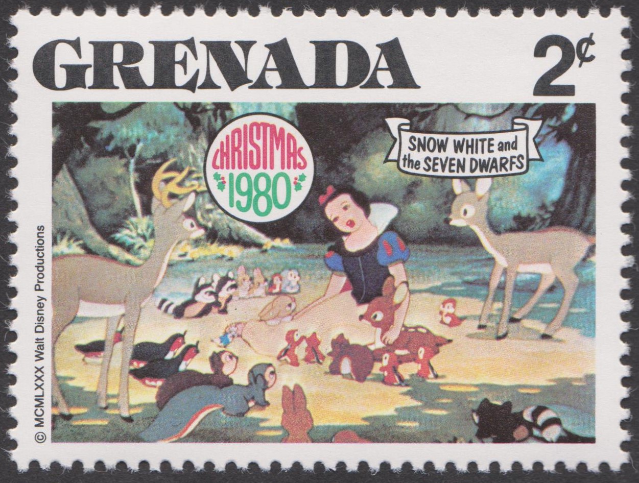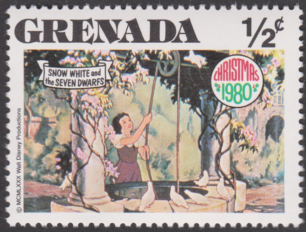 Zu Weihnachten 1980 erschienen diese Postwertzeichen zum Thema Schneewittchen, katalogisiert als Grenada MiNr. 1066 bis 1075: