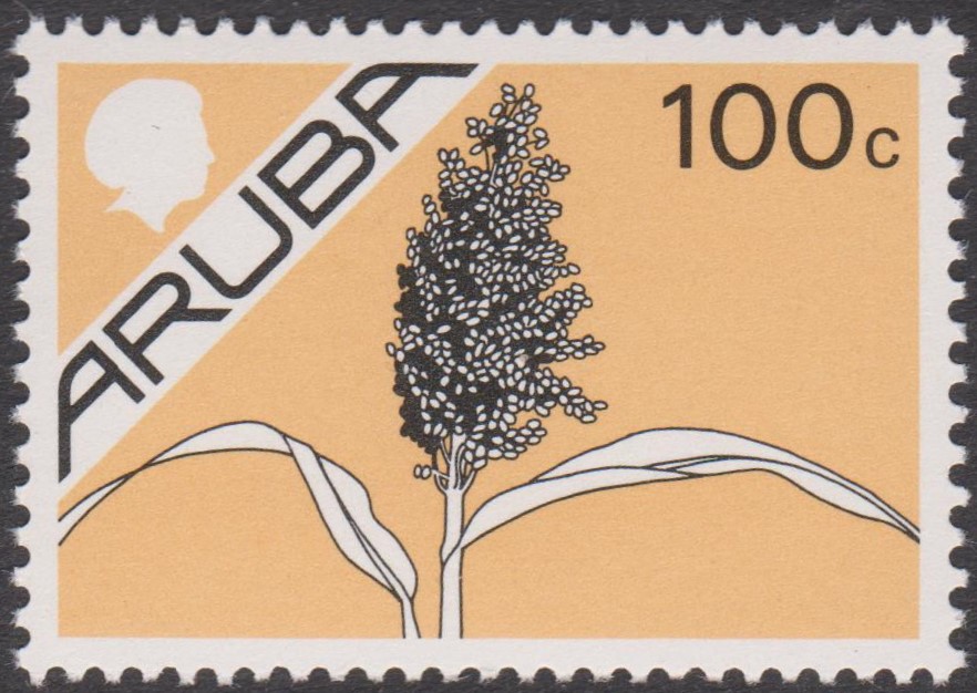 Diese Freimarke der Wertstufe 100 C, Aruba MiNr. 31, erschien am 07.04.1987 und zeigt als Motiv eine Getreideähre: