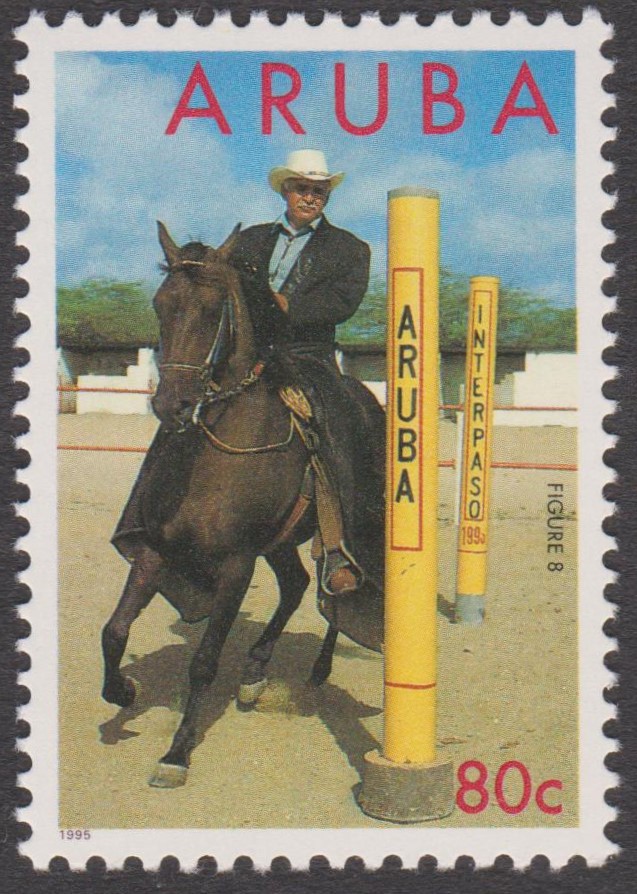 Aruba MiNr. 158 erschien am 26.05.1995 aus Anlaß "10 Jahre Internationale Pferdeschau Interpaso":