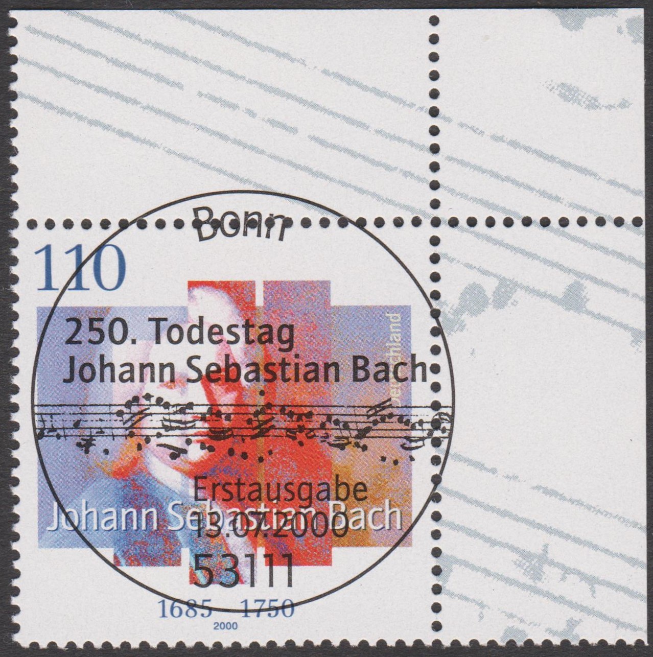 Bund MiNr. 2126, rechte obere Ecke des Zehnerbogens (= Bogenfeld 5) mit Tagesstempel BRIEFZENTRUM 35 vom 26.09.2000: