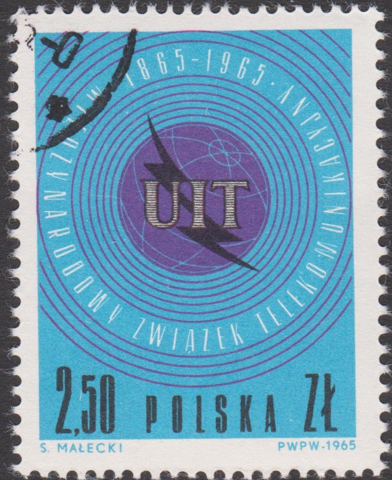 Polen MiNr. 1584 zeigt das Emblem der ITU und erschien am 17.05.1965 zur Würdigung des Jubiläums "100 Jahre Internationale Fernmeldeunion (ITU)":