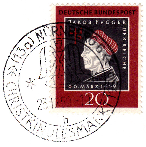 Dieser Sonderstempel wurde in Nürnberg am 23.12.1959 zum Christkindlesmarkt 1959 verwendet.