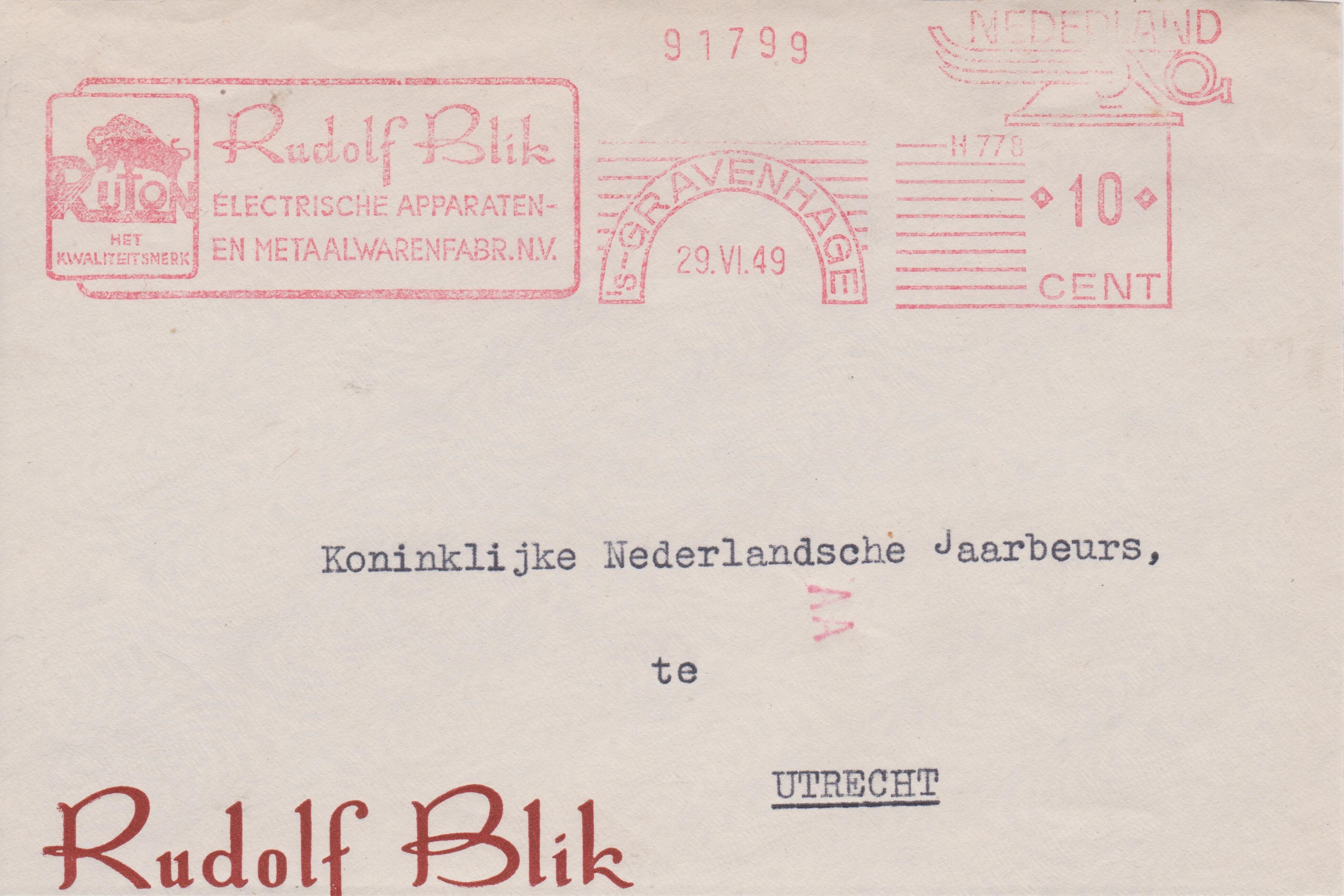 Dieser am 29.06.1949 in 's-GRAVENHAGE aufgegebene, nach UTRECHT adressierte Beleg erhielt in Utrecht eine Eingangscodierung "AA" per Transorma: