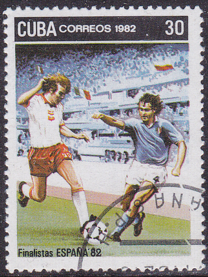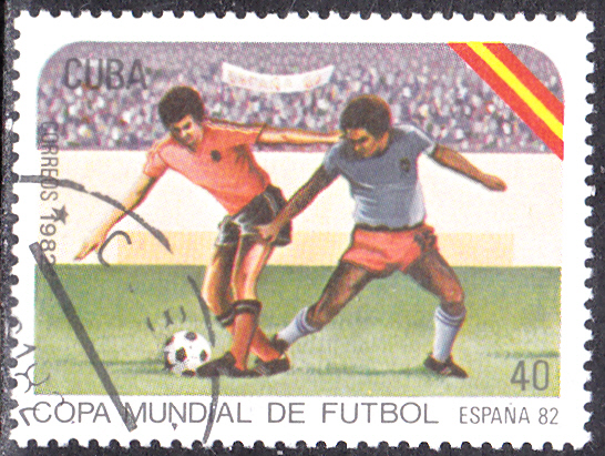 Im Jahre 1982 ist dann in Kuba noch eine dritte Serie zur Fußball WM 1982 in Spanien ausgegeben worden. Diese Marke (MiNr 2685) zeigt einen Stürmer beim Torjubel.
