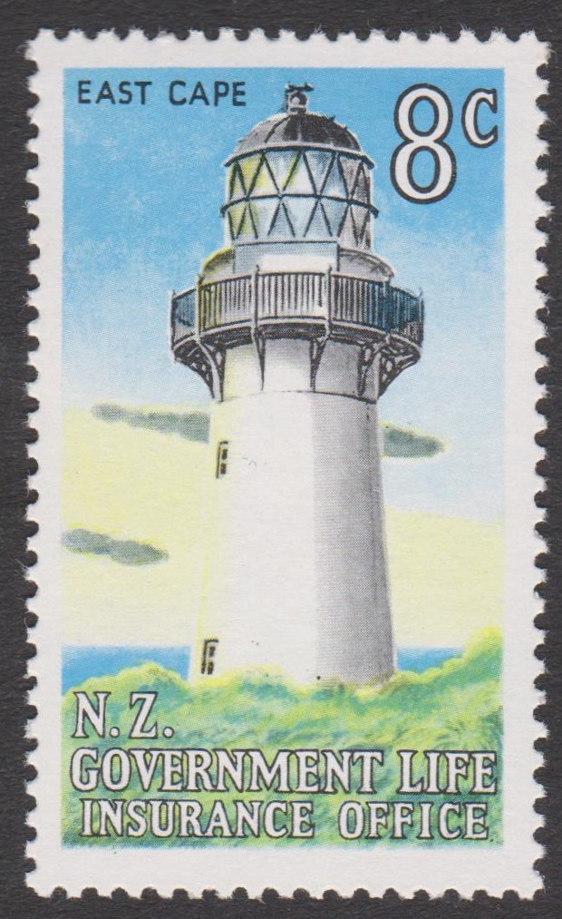 Hier die am 17.11.1976 erschienene Ausgabe, 8 C, MiNr. 44 mit dem Leuchtturm "East Cape (1922)" als Motiv: