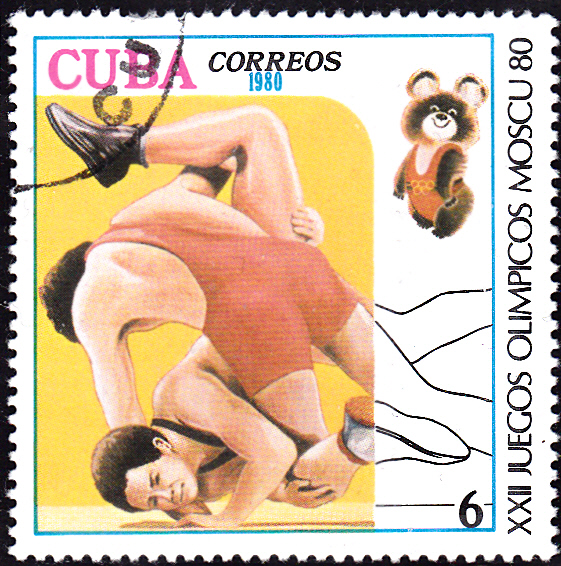 In einer weiteren Serie zu den Sommerspielen 1980 aus Kuba erschien diese Marke (MiNr 2457) mit einer Ringkampfszene.