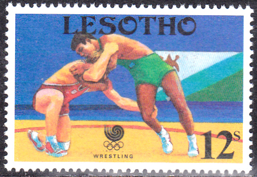 In Lesotho ist zu den Sommerspielen 1988 in Seoul diese Marke (MiNr 727) mit zwei Ringer beim Kampf erschienen.