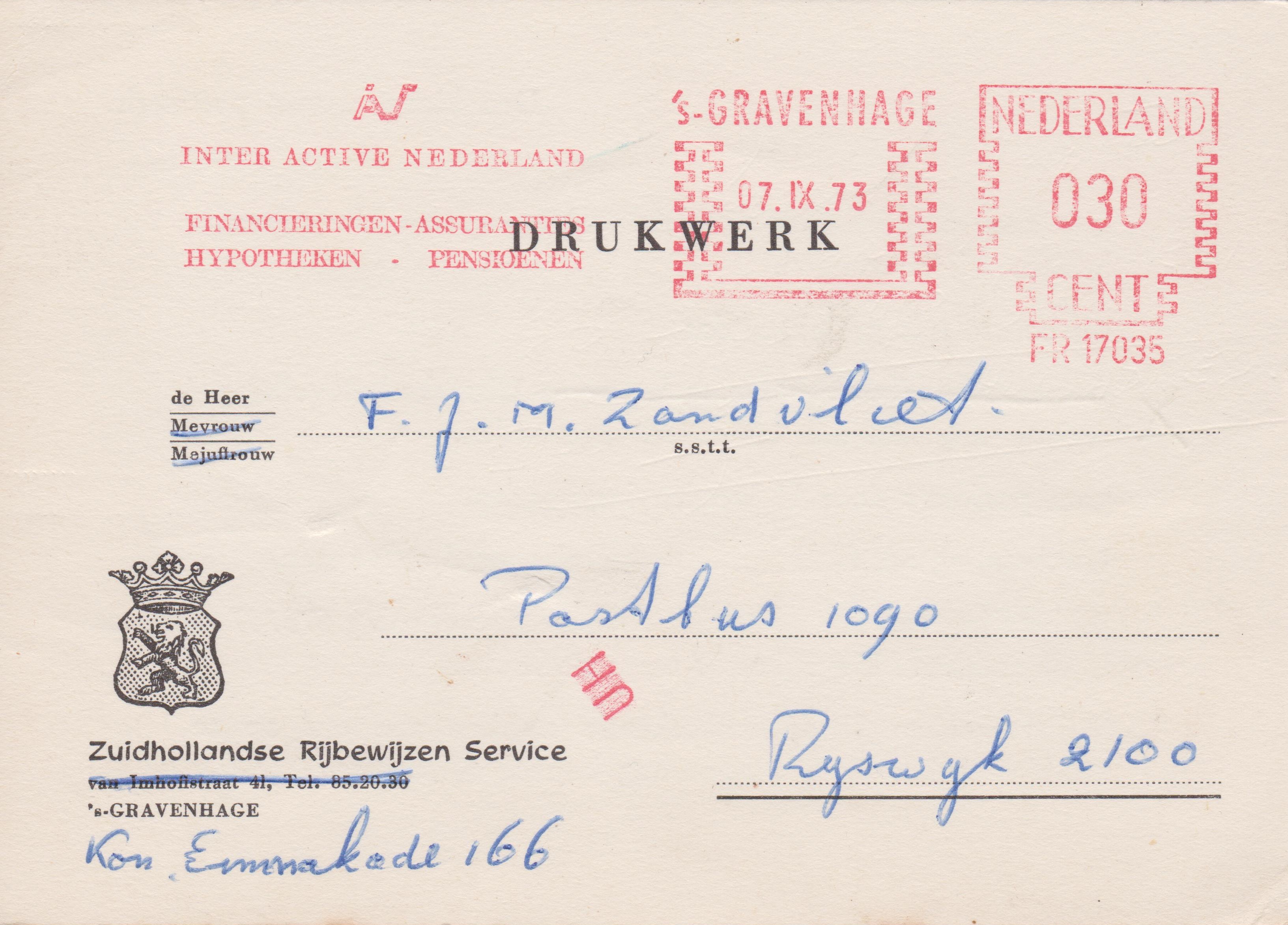 Drucksache in Kartenform, adressiert nach Rijswijk, aufgegeben am 07.09.1973 in 's-GRAVENHAGE: