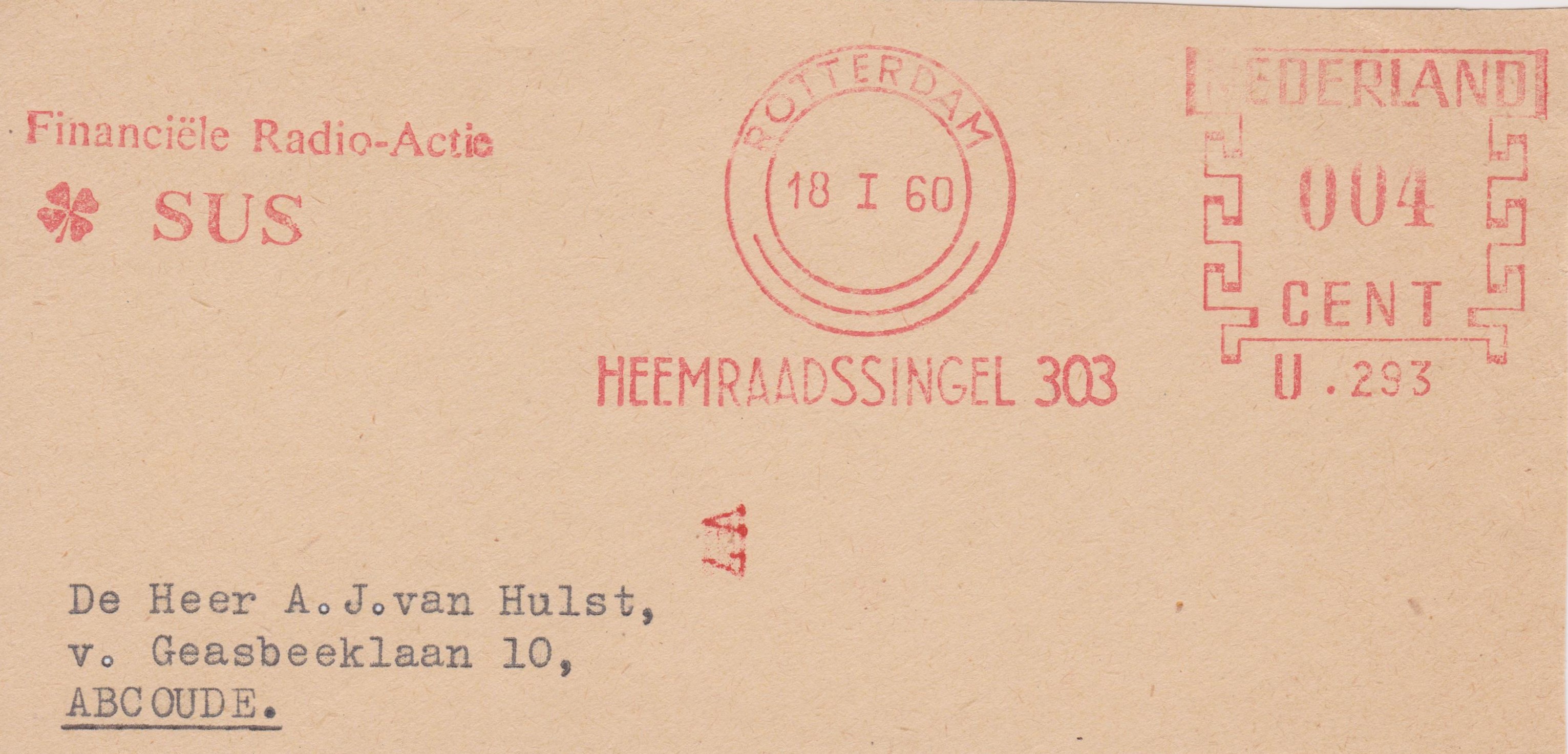 Ausschnitt mit einem Absenderfreistempel vom 18.01.1960 aus ROTTERDAM:
