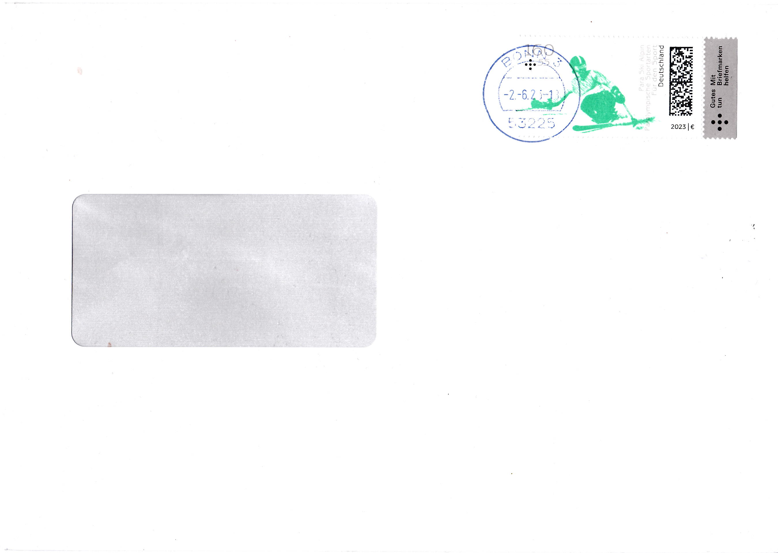 Heute zeige ich einen echt gelaufenen Umschlag (leider ein Fensterkuvert) mit der Besonderheit, dass der Absender den Brief bei der Post mit dem Stempel "Bonn 3) am 2.6.2023 zur Stempelung abgfegeben hat. Der Stempel wurde sauber abgeschlagen. Das ganz besondere ist, dass dieser Brief dann vor eine weiteren Abstempelung im Briefzentrum verschont geblieben ist!!!