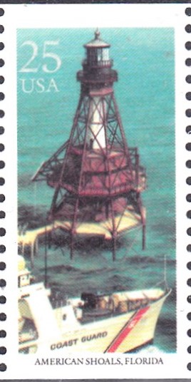 Diese Marke der USA (MiNr 2088) zeigt den Leuchtturm von American Shoals, Florida.