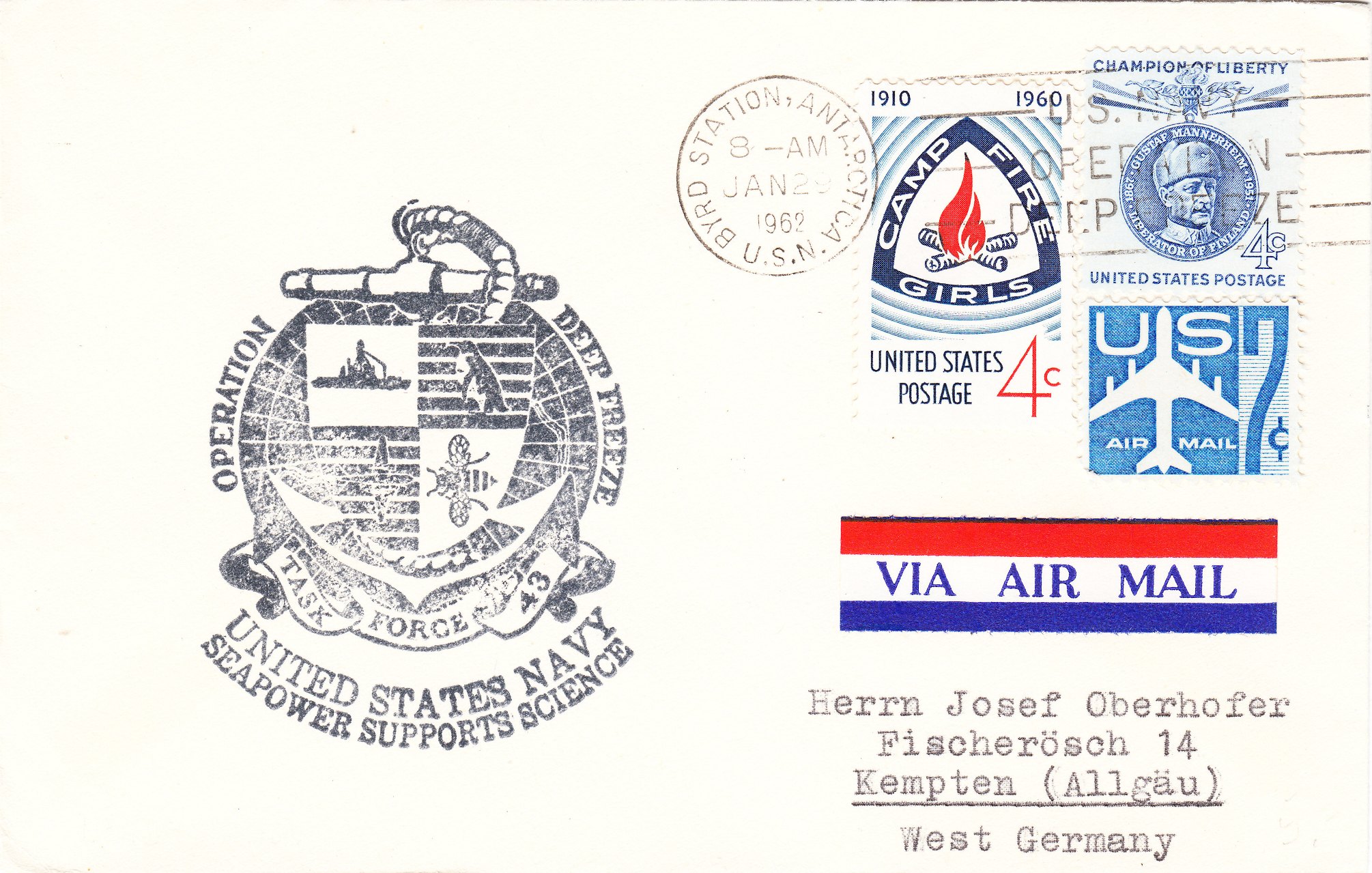 Dieser Beleg wurde am 29.01.1962 in der BYRD Station aufgegeben: