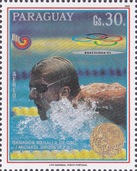 Diese Marke aus Paraguay (MiNr 4308) belegt den Sieg über 200m Schmetterling in Seoul.