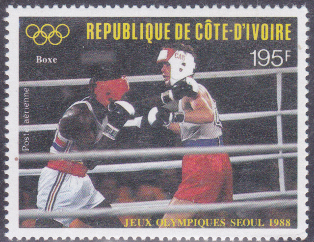 Zu den Spielen in Seoul ist in der Elfenbeinküste in einer Serie diese Marke (MiNr 970) mit einem Turner an den Ringen erschienen.