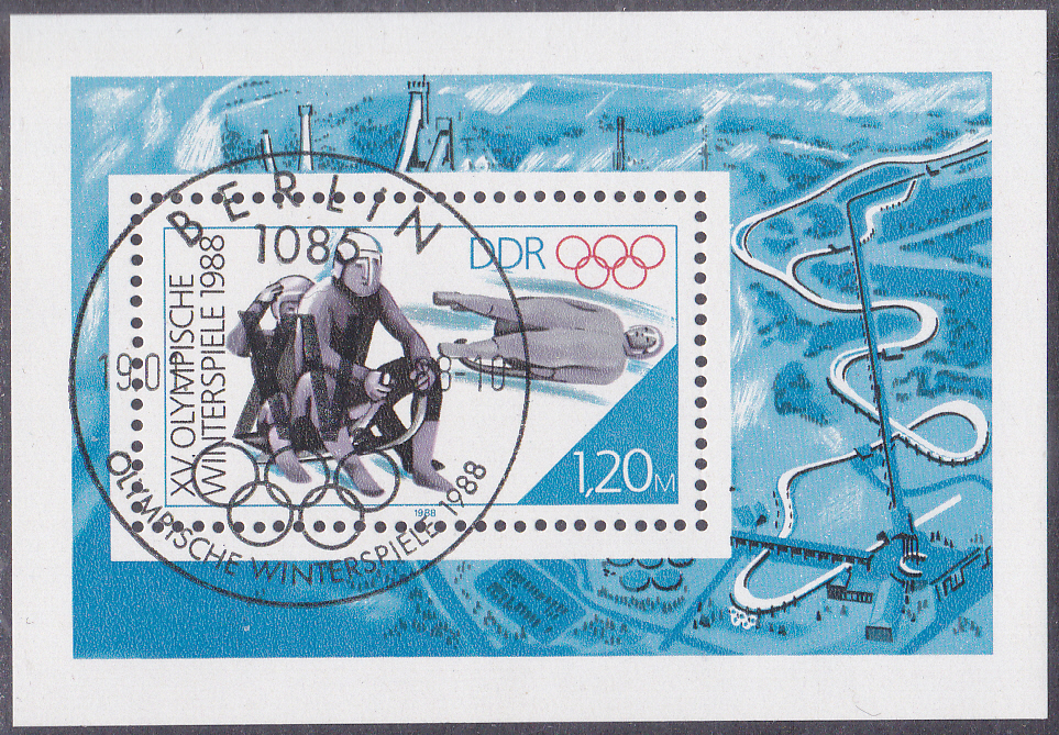 Auf den Komoren ist in einer Serie zu den Winterspielen 1988 diese Marke (MiNr 809 A) mit einem Doppelsitzer erschienen.