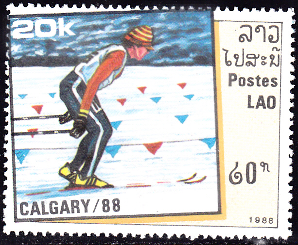 In einer Serie zu den Winterspielen 1988 ist in Nicaragua 1988 diese Marke (MiNr 2843) mit einem Langläufer erschienen. Hier zeige ich eine Marke mit Zierfeld.