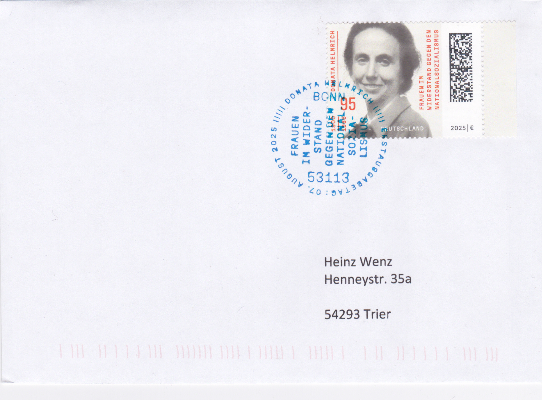 Brief vom Ersttag mit dieser Marke und dem Ersttagsonderstempel aus Bonn.