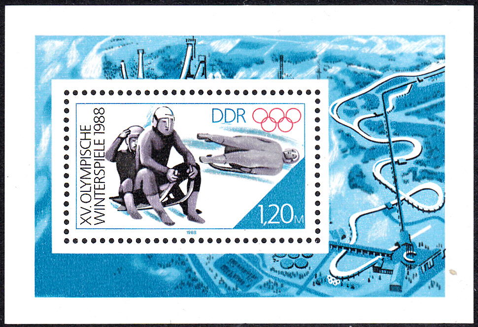In der Zentralafrikanischen Republik ist diese Marke (MiNr 1287 A) mit einem Doppelsitzer beim Rodeln in einer Serie zu den Winterspielen 1988 erschienen.