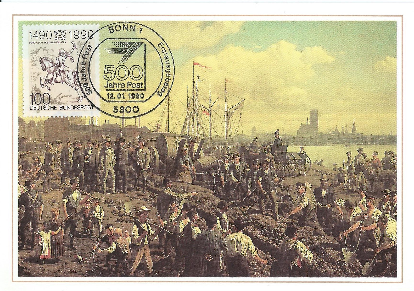 hier eine weitere Parallelausgabe: Die Ausgabe vom 15.6.1989 „1300 Jahre Mission und Martyrium der Frankenapostel Kilian, Kolonat und Totnan“ der Bundesrepublik Deutschland (Mi.-Nr. 1424) erschien Motivgleich auch in Irland (hier als Mi.-Nr. 683). Der hier gezeigte Scan mit beiden Marken stammt aus dem Ersttagsblatt der Deutschen Bundespost.