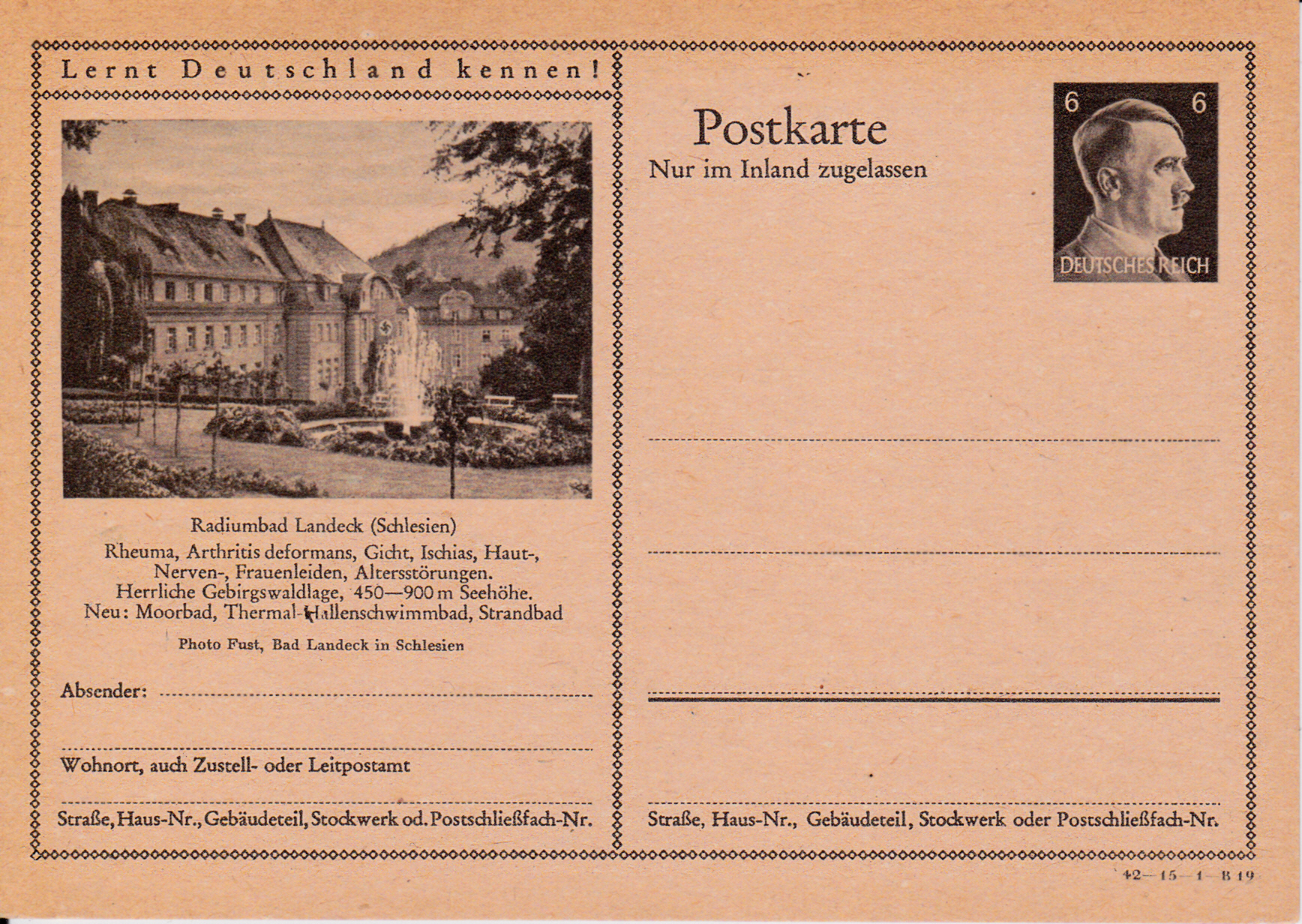 Auf einer zweiten Karte (Serie 15 Bild 19) zeigt Landeck (Schlesien) ein neues Foto mit dem Radiumbad.
