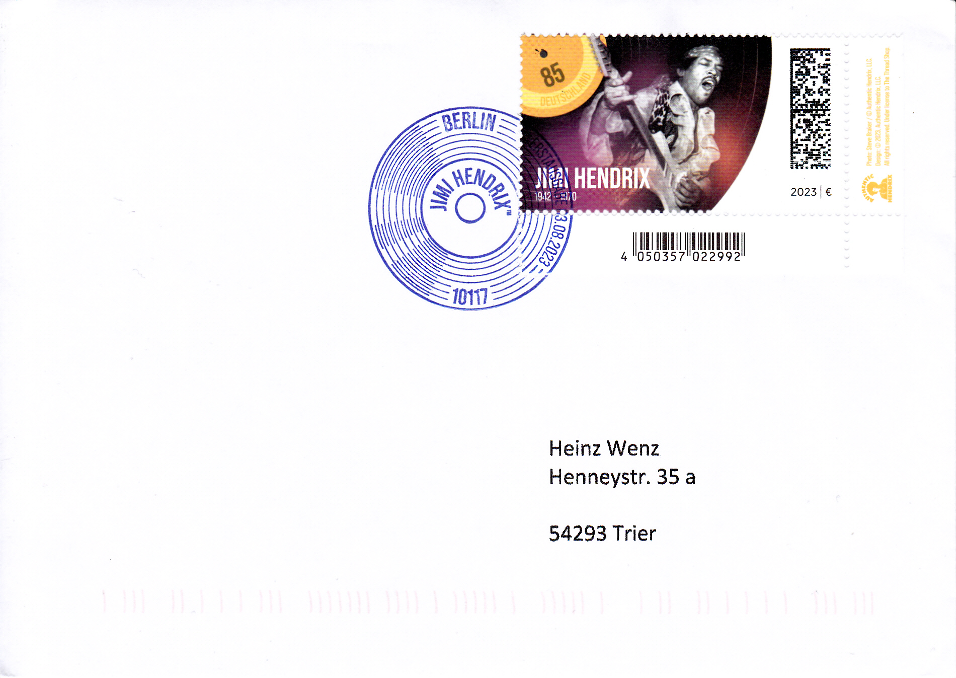 Auf einer Marke der Deutschen Post (MiNr 3780) aus der Serie "Legenden der Pop- und Rockmusik" ist Jimi Hendrix abgebildet. Hier zeige ich ein Eckrandstück mit EAN-Codierung.