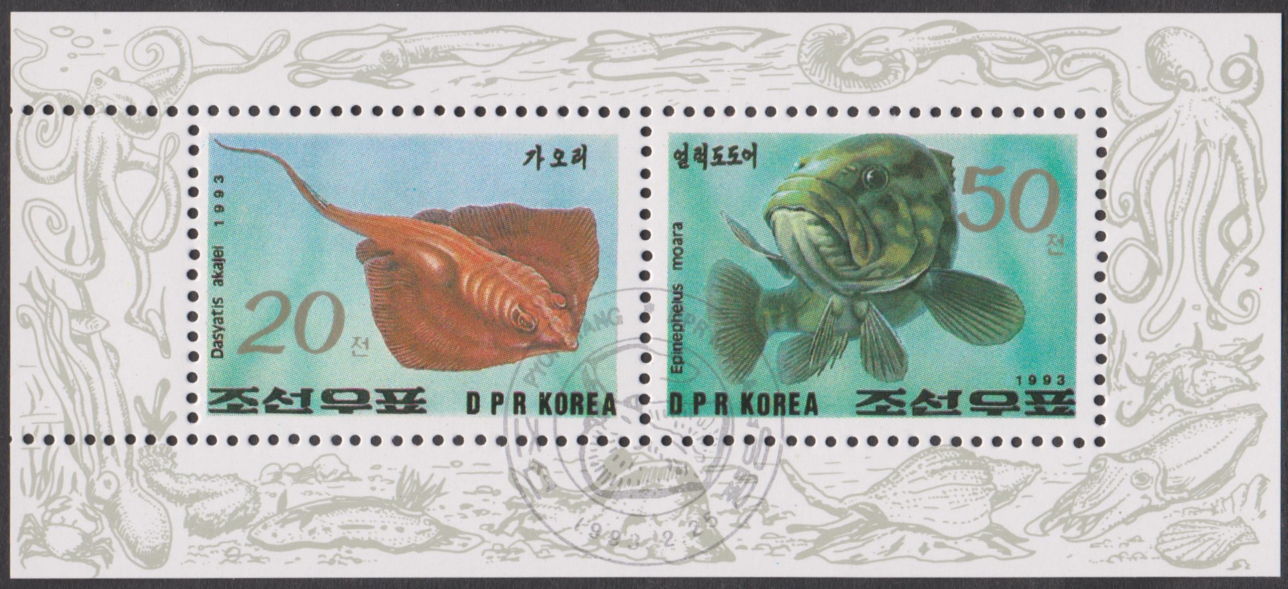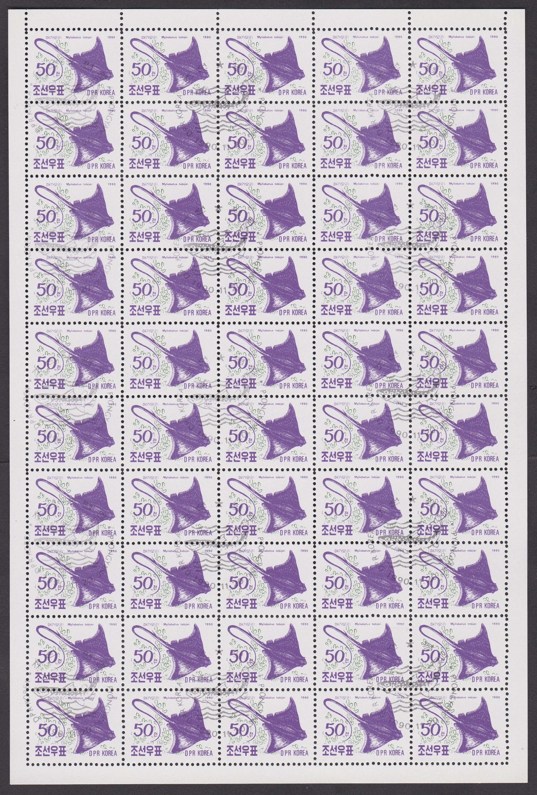 Dieses Postwertzeichen aus Korea, Nordkorea MiNr. 3154, zeigt Acipenser mikadoi, hier im Originalbogen mit Ersttagsstempel vom 20.11.1990: