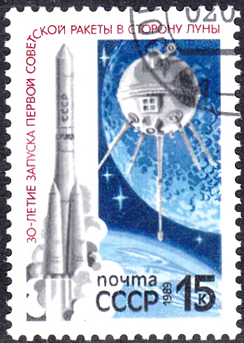 Zum 30. Jahrestag des Starts der Mondsonde Luna 1 ist in der Sowjetunion eine Marke (MiNr 5918) mit der Abbildung einer Trägerrakete Wostok, Mond und Erde und der Mondsonde Luna 1 erschienen.