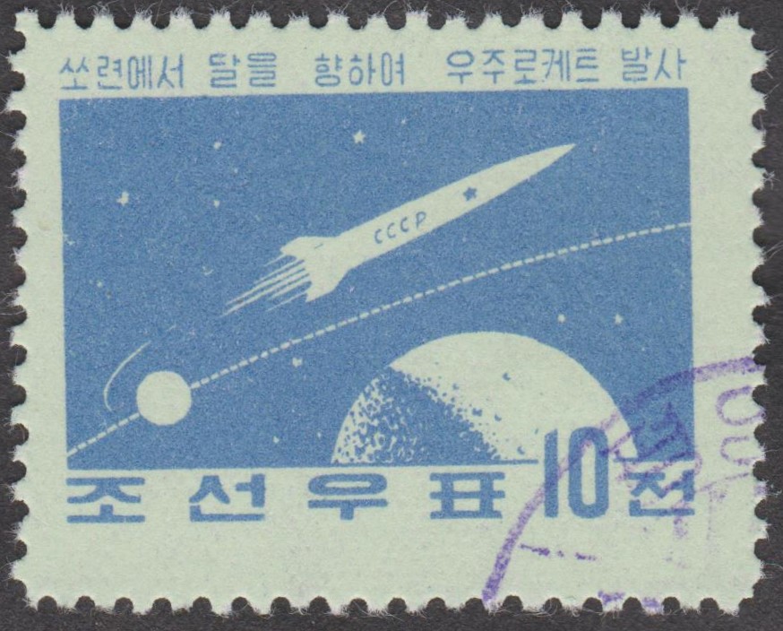 Aus Anlaß des Starts der ersten russischen Mondsonde erschien am 04.05.1959 in Nordkorea MiNr. 172 A, die als Motive eine Rakete, die Erde mit Planetenbahn sowie den Mond zeigt: