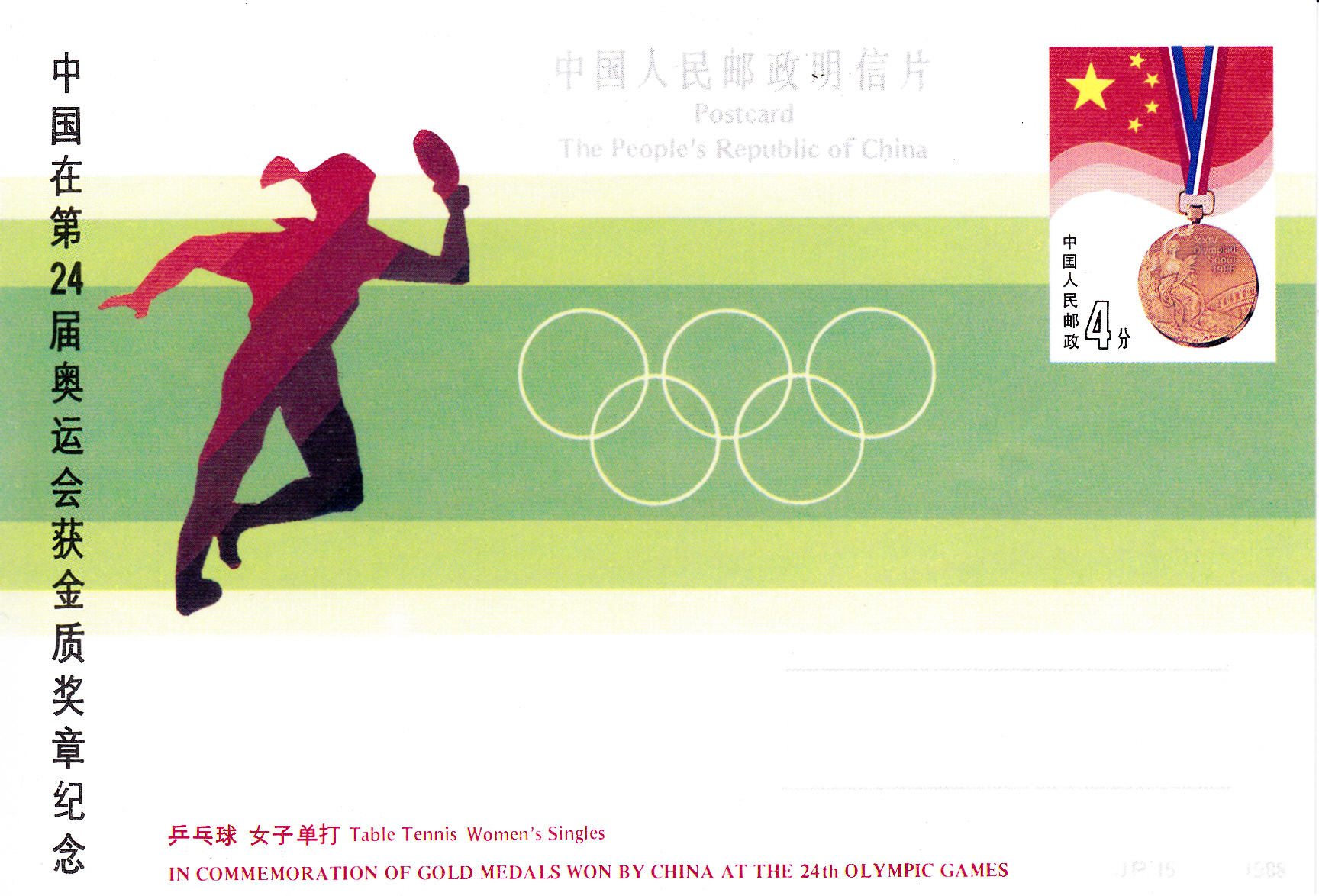 Zum Olympiasieg in Seoul ist in China diese Ganzsachen-Postkarte erschien.