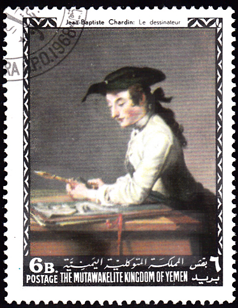 Aus Jemen-Nord (Königreich) kommt diese Marke (MiNr 561 A) mit dem Gemälde "Der Zeichner" von Jean Siméon Chardin (Jean-Baptiste S. Chardin, siehe erster Beitrag!).