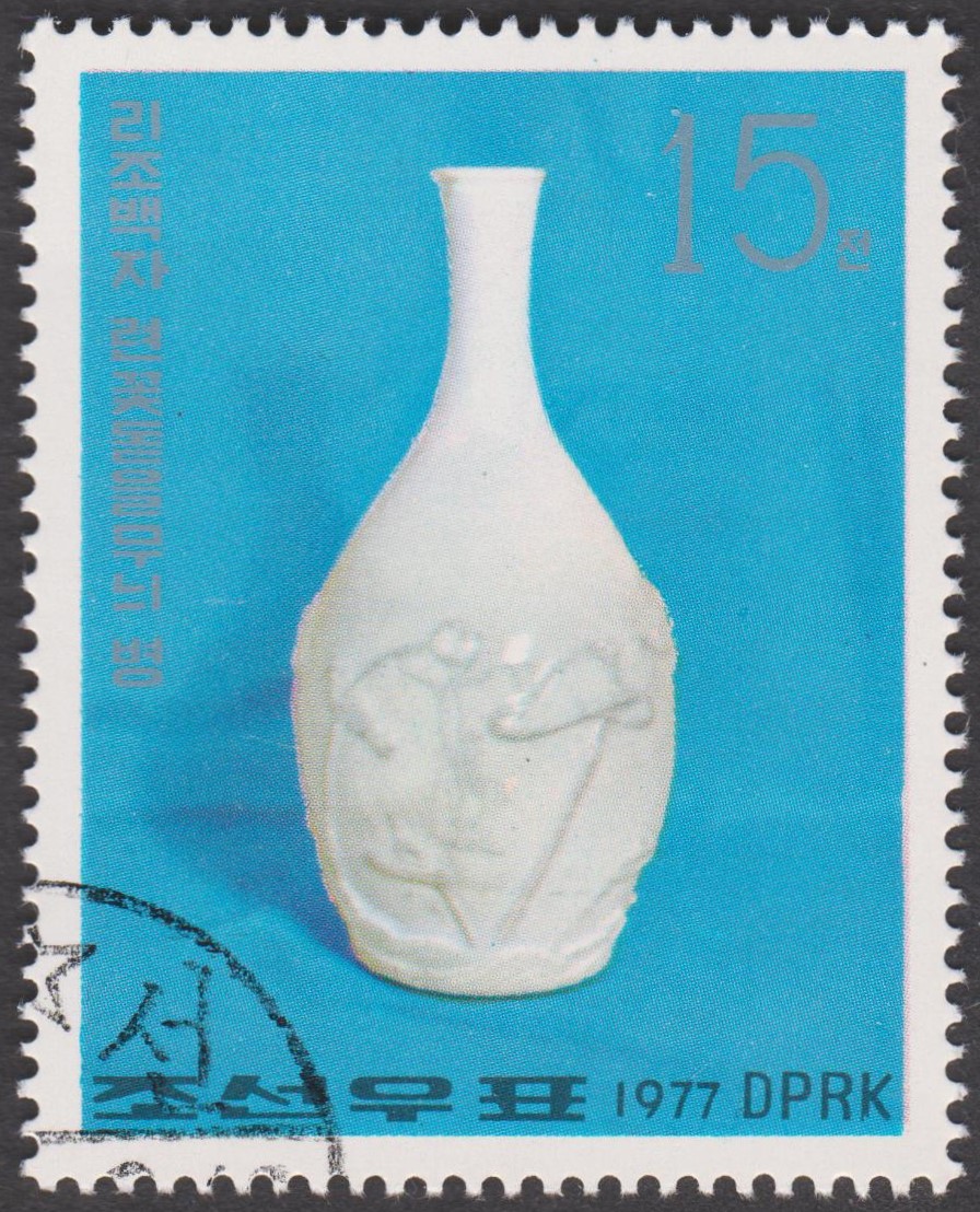 Hier die Einzelmarken Nordkorea MiNr. 1621 - 1624, die vier Porzellanvasen aus der Konyo- und Li-Dynastie zeigen: