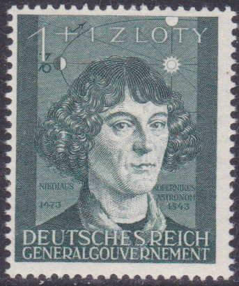 Auch diese Marke Generalgouvernement MiNr 100 zeigt ein Porträt von Nikolaus Kopernikus.