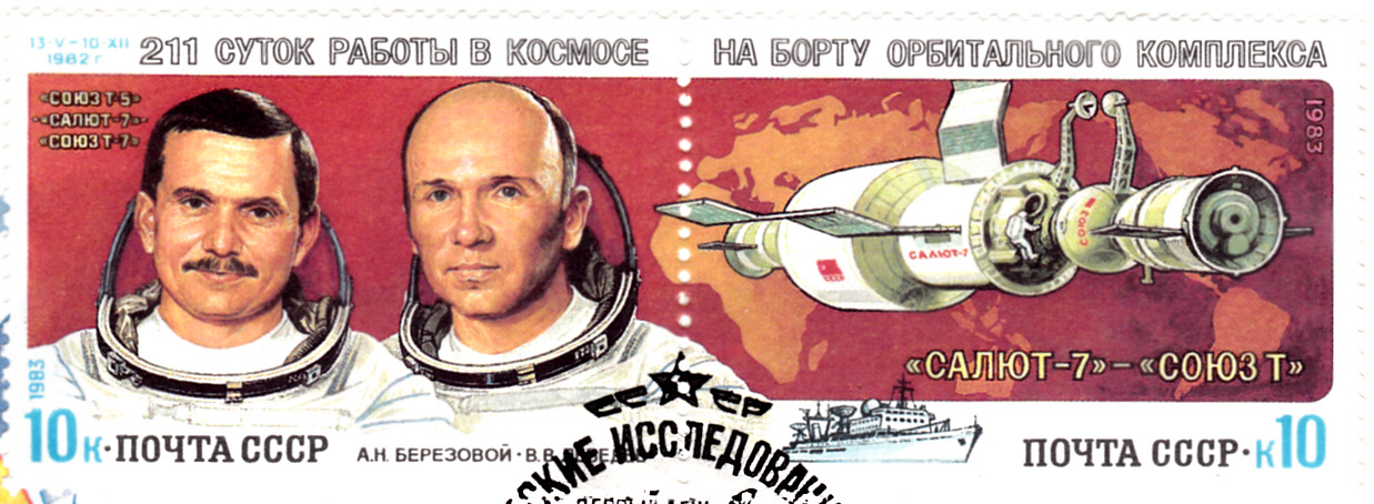 Es gibt auch eine Marke aus der Sowjetunion (MiNr 3267), die die beiden Kosmonauten Anatolij Beresowoj (geb. 11. April 1942 in Enem, Autonome Republik Adygeja, Russische SFSR; gest. 20. Sept. 2014 in Moskau) und Walentin Lebedew (geb. 14. April 1942 in Moskau) zeigt.