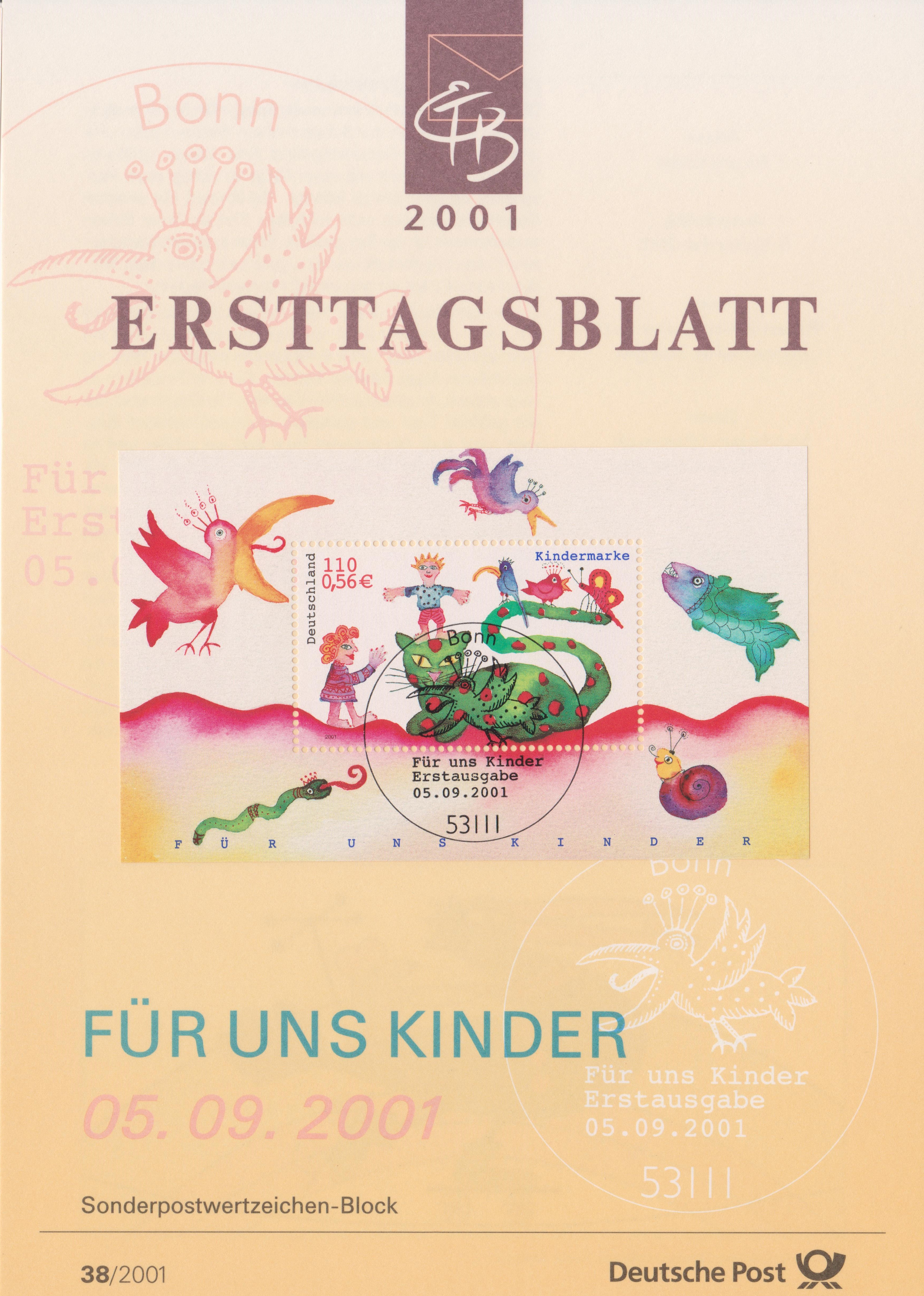 Bund Block 55, gestempelt POSTPHILATELIE FRANKFURT AM MAIN am 05.09.2001 (= Erstausgabetag):
