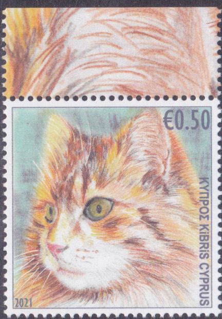 Die letzte Marke der Serie aus Zypern (MiNr 1469) zeigt eine rot-getigerte Katze.