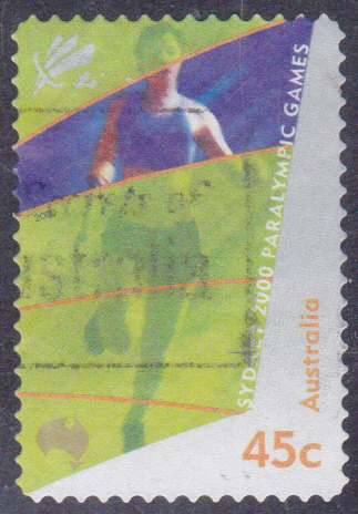 Aus einer Serie aus Australien zu den Paralympischen Sommerspiele 2000 in Sydney kommt diese Marke (MiNr 1936) mit einem Spieler beim Rollstuhl-Tennis.