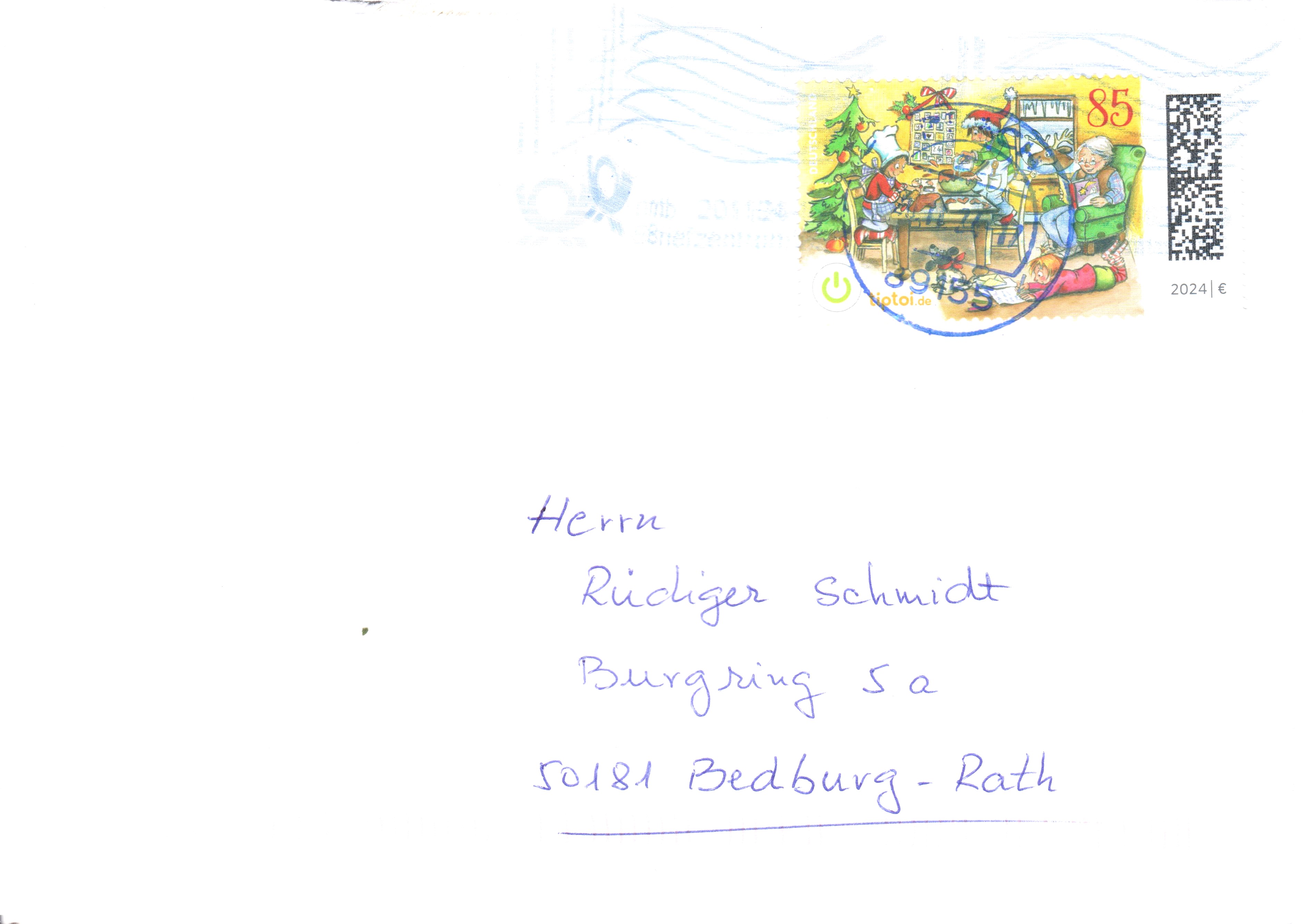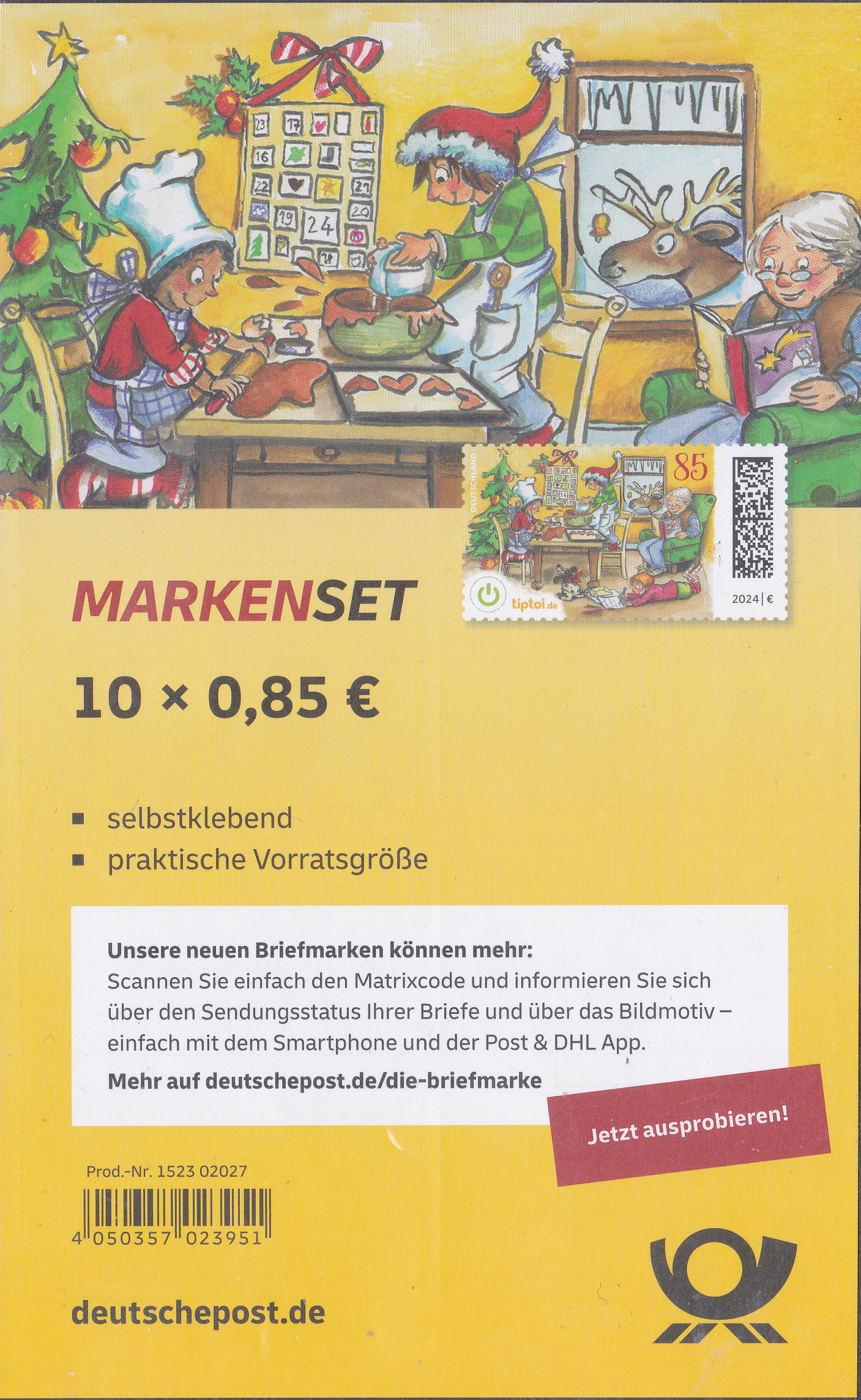 Die Deutsche Post hat 2024 ebenfalls eine Marke (MiNr 3865) zum Thema Weihnachtsbäckerei verausgabt. Sie zeigt das Motiv "Kinder und Großmutter in weihnachtlicher Stube backen Plätzchen, schreiben Wunschzettel und lesen Geschichten".