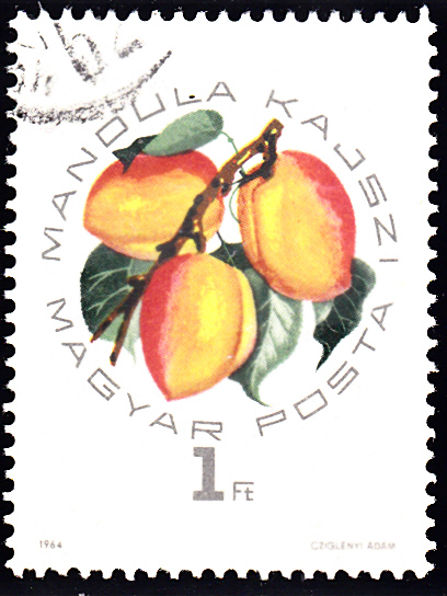 Aus einer Serie zur Nationale Aprikosenausstellung in Szegedin ist in Ungarn diese Marke (MiNr 2044 A) mit einem blühenden Aprikosenzweig erschienen.