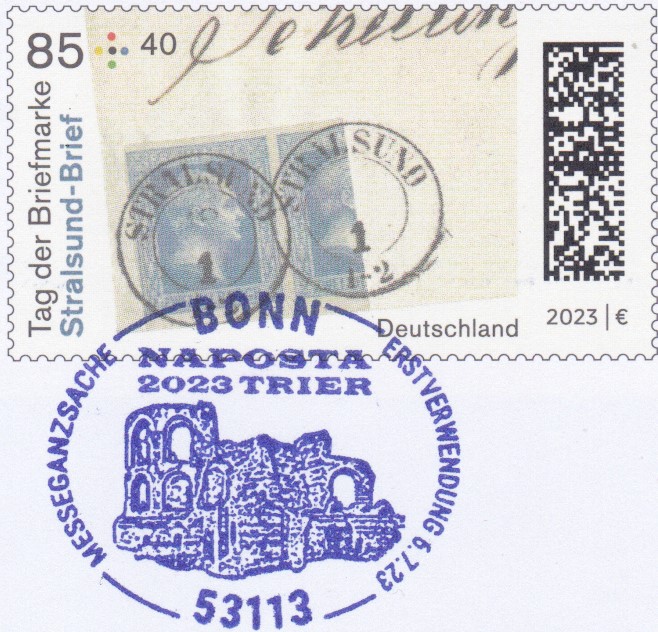 Hier das von Heinz bereits vorgestellte Postwertzeichen, das die in Wurmlingen zu besichtigenden Reste eines römischen Gutshofes sowie eines römischen Bades zeigt. In einer Serie zum Thema "Archäologie in Deutschland" erschien bei der Deutschen Post dieses Postwertzeichen, MiNr. 2281, mit einer Abbildung der Grundmauern des Badegebäudes eines römischen Gutshofes in Wurmlingen mit Pfostenspuren eines danach eingebauten frühalemannischen Speichers (um 260):