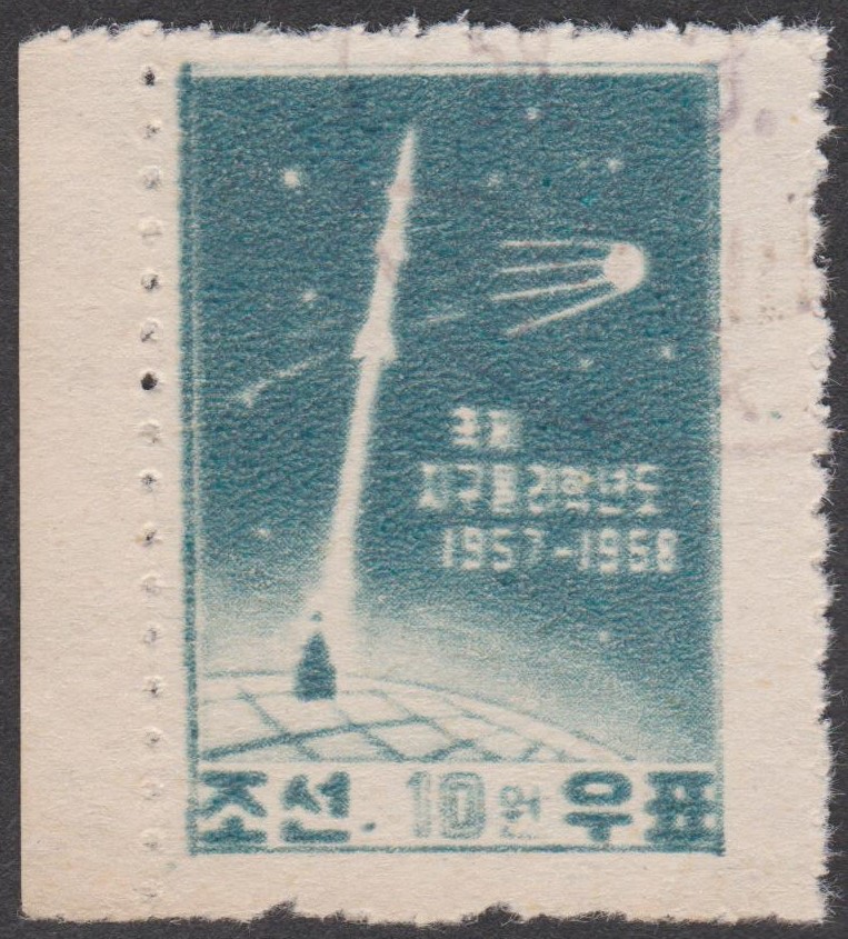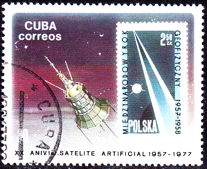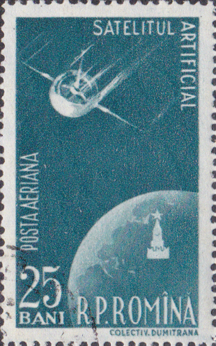 Hier die beiden in der Sowjetunion zum Start von Sputnik 1 erschienenen zwei bildgleichen Postwertzeichen: