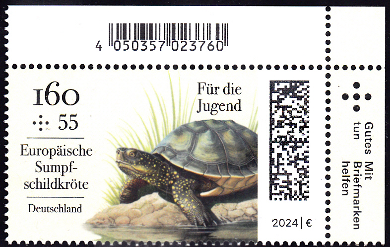 Auf einer Europamarke 2021 aus Bosnien Herzegowina (Serbische Republik) ist eine Griechische Landschildkröte (Testudo hermanni) abgebildet.