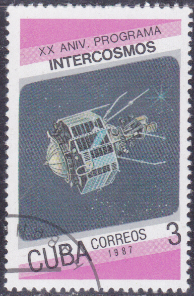 Auf einer Marke aus Kuba (MiNr 2846) ist Interkosmos 1 zu sehen.